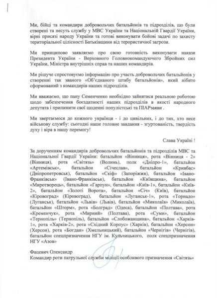 Заявление командиров батальонов МВД и Нацгвардии Украины.