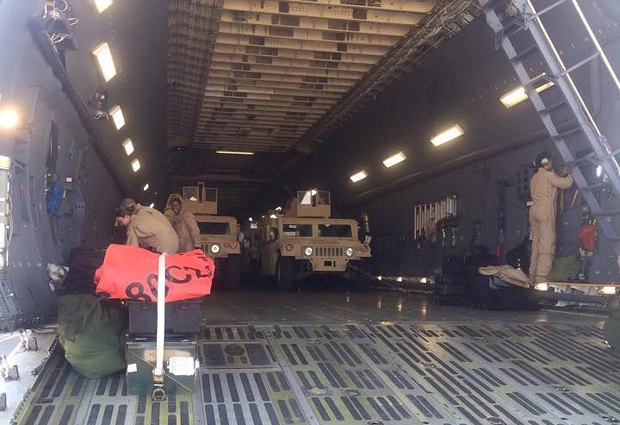 В Украину прилетел самолет с первой партией американских внедорожниками HMMWV (Humvee). Фотографии из Борисполя опубликовал в своем фейсбуке советник президента Юрий Бирюков.