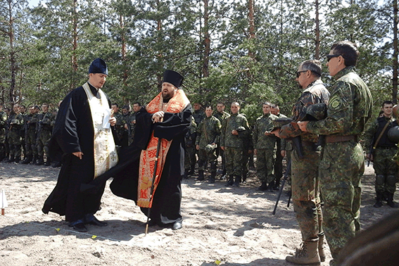 Началось мероприятие с молебна. Затем бойцы спецподразделения батальона продемонстрировали отдельные элементы ведения боевых действий в современных условиях, которыми их обучили грузинские инструктора из центра подготовки «Патриот».