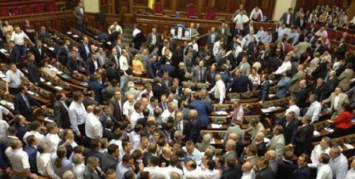 Практически после этих слов депутаты начали подниматься со своих мест и заблокировали трибуну. Гройсман вынужден был объявить перерыв, но так как трибуна заблокирована, то парламент все равно бы не работал. После этого спикер ВР пригласил на оперативное совещание к себе лидеров фракций коалиции, чтобы решить данный вопрос.
