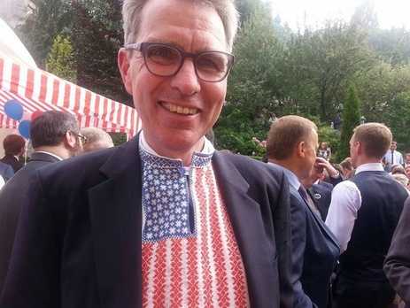 Посол США в Украине Джеффри Пайетт на торжественном приеме в американском посольстве появился в украинской вышиванке с американскими мотивами.