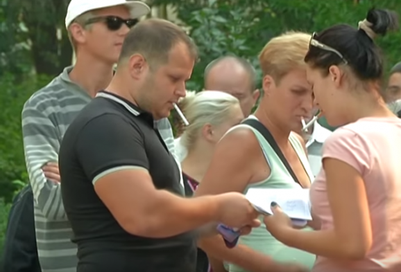 Также на видео был зафиксирован момент передачи организаторами "митингующим" 50-гривневых купюр.