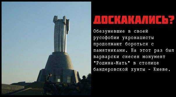 Утверждается, что в процессе декоммунизации в Киеве снесли памятник «Родина-мать». Фейк иллюстрируется фотографией строительства мемориала в 1980. Сообщает «Баба і кіт».