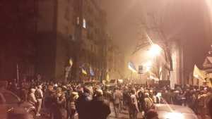 Оцепление из правоохранителей создано не только на ул. Банковой у президентской администрации, но и вдоль ул. Институтской, где также собралось достаточно протестующих.