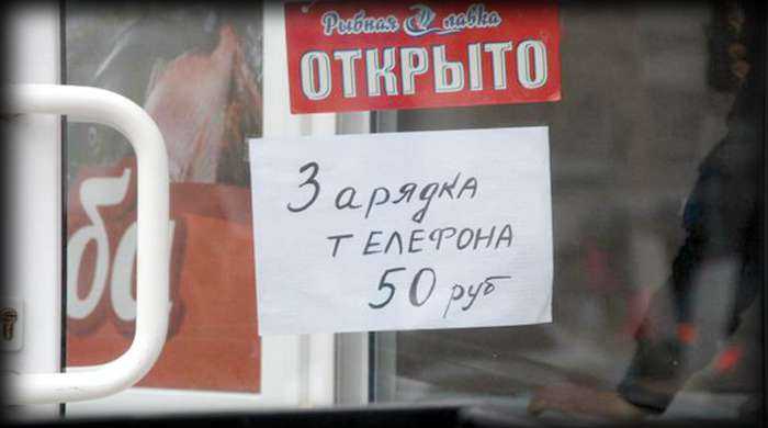 На оккупированном Российской Федерацией Крымском полуострове в работающих с электрогенератором торговых точках уже предлагают желающим зарядить свои мобильные телефоны и прочие гаджеты за хоть и небольшие, но все же деньги – 50 рублей.