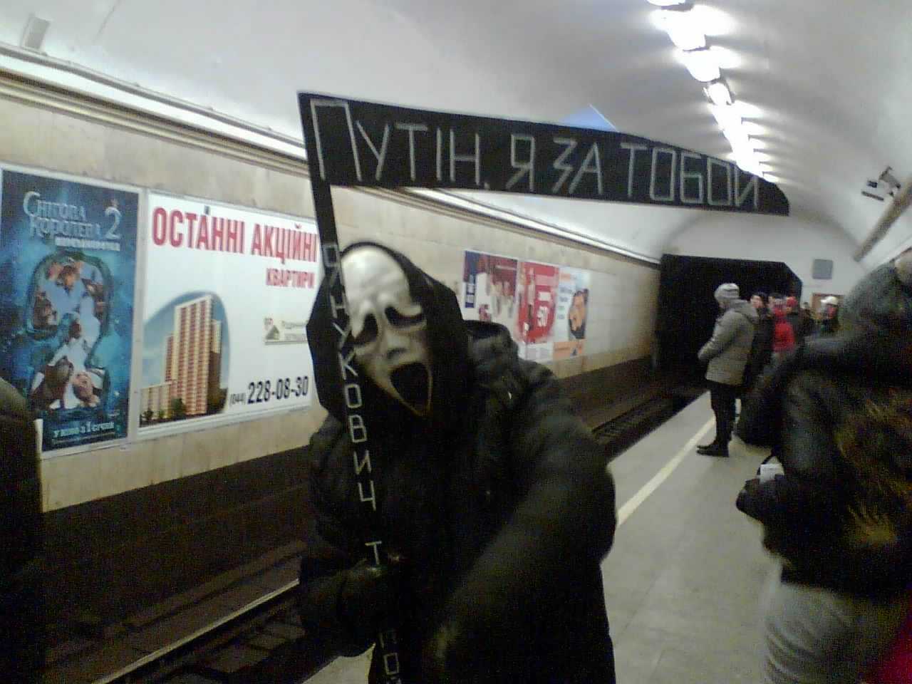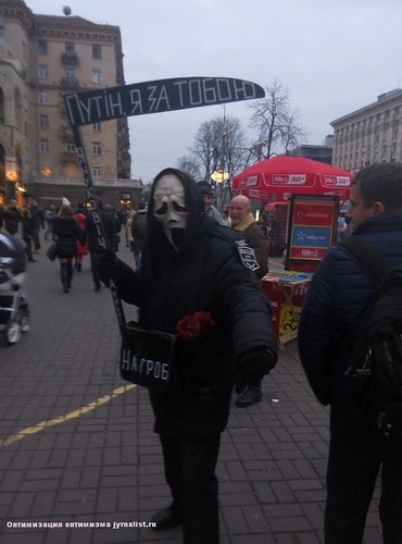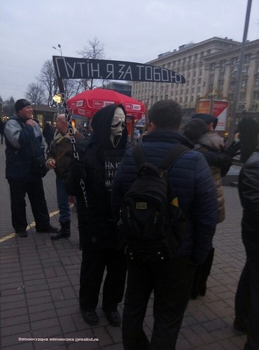 "На косе было написано: Путин, а за тобой!", - прокомментировал происходящее киевский журналист Алексей Фалин, ставший свидетелем необычного перфоманса.