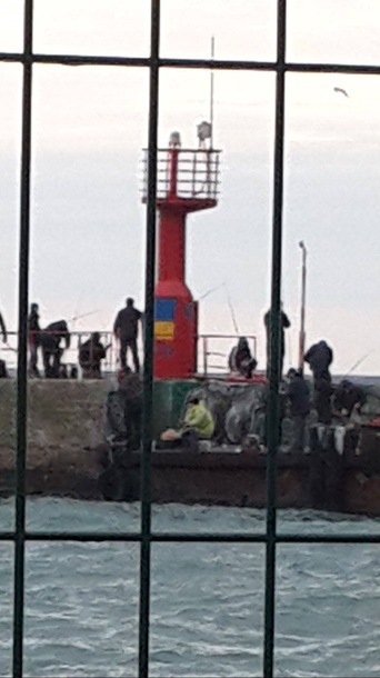 В ялтинском порту в Крыму на маяке, расположенном на причале для катеров, неизвестные нарисовали украинский флаг.