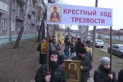 Верующие с иконами прошлись по улицам города ради пропаганды здорового образа жизни.