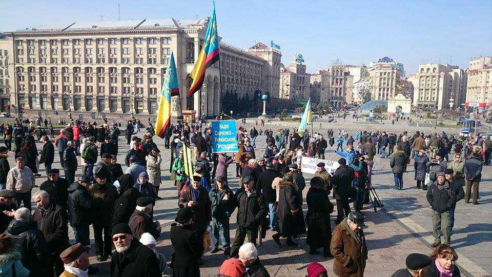 Тысячи украинцев вышли на акцию протеста #FreeSavchenko! с требованием освобождения незаконно удерживаемой летчицы и всех украинских политзаключенных, находящихся на территории России. На Майдане люди скандируют "Путин-убийца" и другие обличительные лозунги в адрес президента России.