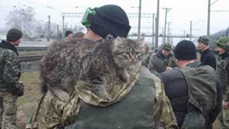 Очередная ротация в зоне АТО вызвала смех потому как почти все военнослужащие тащили домой подобранных кошек и собак.
