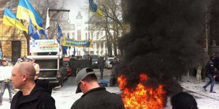 Напомним, под зданием Администрации Президента в Киеве начались массовые беспорядки. Активисты «Автомайдана» столкнулись с сотрудниками Национальной полиции. Также загорелись шины.