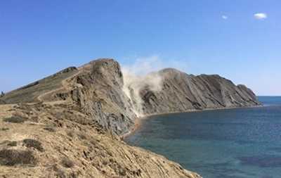 В Коктебеле отдыхающие своими глазами увидели разрушительную силу природы. Прямо перед объективами камер мыс Хамелеон, который разделяет Коктебельский залив и Тихую бухту, частично обвалился в море.