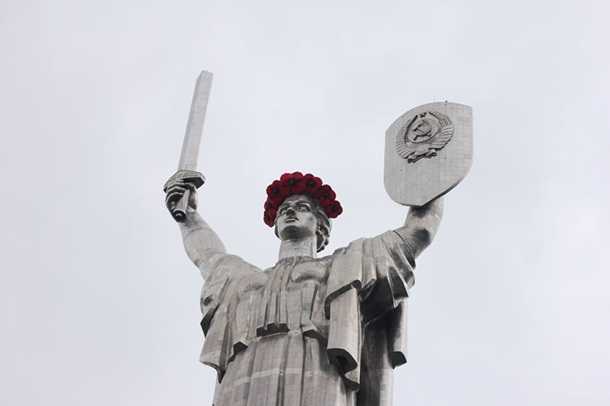 В Киеве к Дню Победы на голову монумента "Родина-мать" надели венок из красных маков. В Украине маки - символ Дня памяти и примирения.