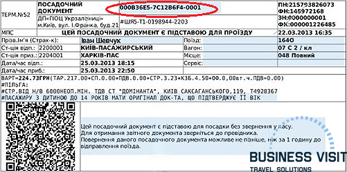 проездных / перевозочных документов. Бланк заказа необходимо предоставить в билетную кассу материковой части Украины для распечатки проездных и перевозочных документов на бланке установленного образца.