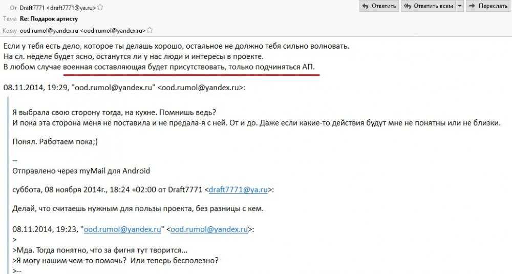 Опубликованы выдержки из их переписки, где они обсуждают некоего «заказчика», которого именуют как «ап» - обычно такую аббревиатуру используют для обозначения «администрации президента» или «аппарата президента».