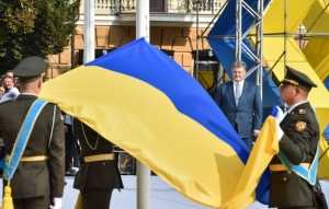 “Сейчас, отсюда, со Святой Софии, я отправляюсь к линии фронта. Отправляюсь, чтобы поздравить с Днем Государственного флага, с юбилеем, 25-летием нашей украинской независимости тех, кто является главным гарантом нашей свободы, демократии и государственной самостоятельности”, - сказал Петр Порошенко.