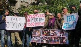 Представители «Правого сектора», ВО «Свобода» и ОУН собрались у здания МВД и требуют отставки главы МВД Арсена Авакова и руководителя Нацполиции Хатии Деканоидзе.