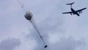 Во время десантирования была разбита боевая машина ВСУ. При спуске с парашютом с самолета Ил-76 БМД-2 потерпела крушение.
