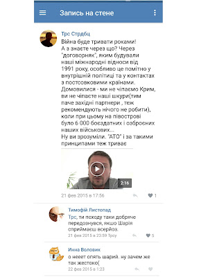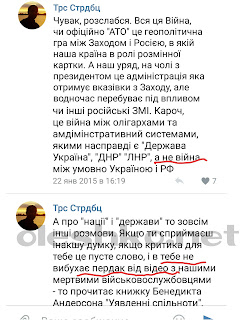 Писал Тарас и о том, что никакой войны с Россией нет, это все война с украинскими олигархами и "республиками". Эту же муть он повторил в интервью Шарию, назвав войну "гражданской".