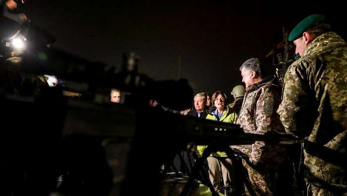 Порошенко заявил, что прибыл на Донбасс, чтобы выказать уважение украинскому воинству и поддержать бойцов. При этом, обращаясь к жителям Донбасса в конце выступления, он упомянул «украинскую оккупацию».