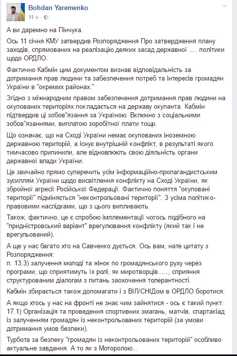 Проще говоря, правительство признало, что в Донбассе нет оккупированных иностранным государством территорий, а существует внутренний конфликт.