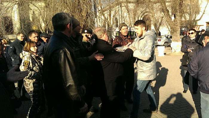 В конце акции к толпе сторонников сепаратизма на Донбассе подошел высокий молодой человек и начал кричать, что Россия виновата в войне на Востоке Украины. Сообщается, что кто-то из митингующих тут же дал ему оплеуху. Обозленные участники акции заорали, что нужно «убрать этого провокатора».