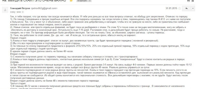 Повторяю, помните, предложения о продаже военнопленных исходили не от меня, а мне от российской стороны! А вам, чтобы убедиться в бесовской лжи стоит просто включить видеоролик и сравнивать текст с этими скриншотами присланного мне письма, который Бес зачитывает в видеоролике (выкладываю впервые):