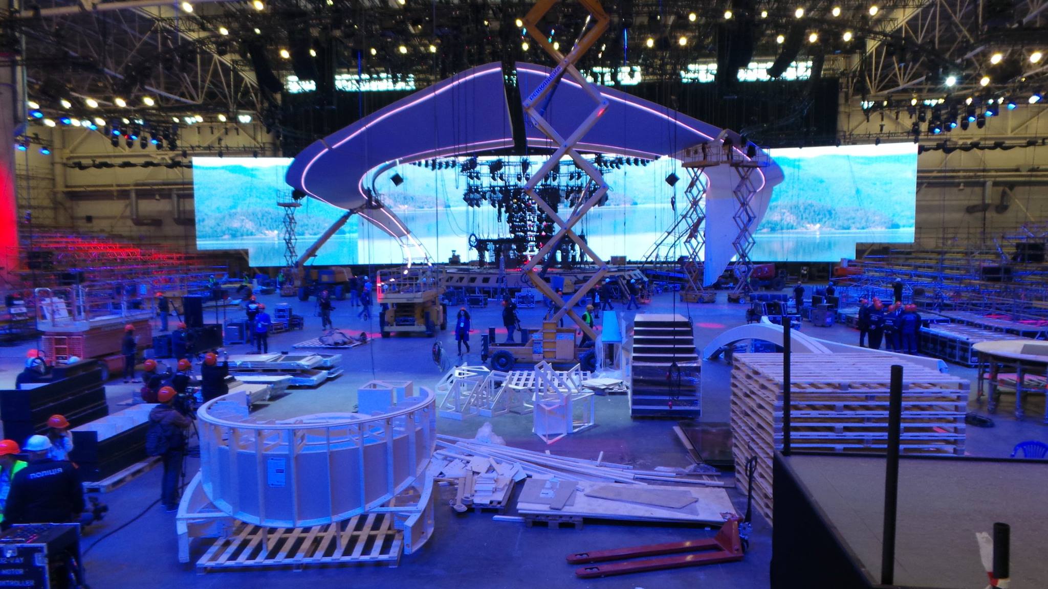 По словам исполнительного продюсера "Евровидения", в настоящее время все работы по подготовке конкурса ведутся в интенсивном режиме, поскольку до главного песенного события Европы осталось меньше месяца. Как сообщила исполнительный директор конкурса Ольга Мельциг все сценические конструкции имеют вес в 30 тонн, а площадь самой сцены составит 350 кв. м.