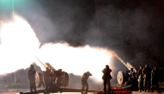 В оккупированном Донецке боевики из гаубиц 152мм пускали салют. Об этом на своей странице в Твиттере написал блогер Александр Чернов.