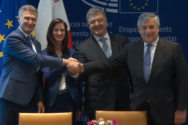 В присутствии нашего гаранта свои подписи под соглашением поставили представитель руководства Совета Европейского Союза и Антонио Таяни, президент Европарламента.