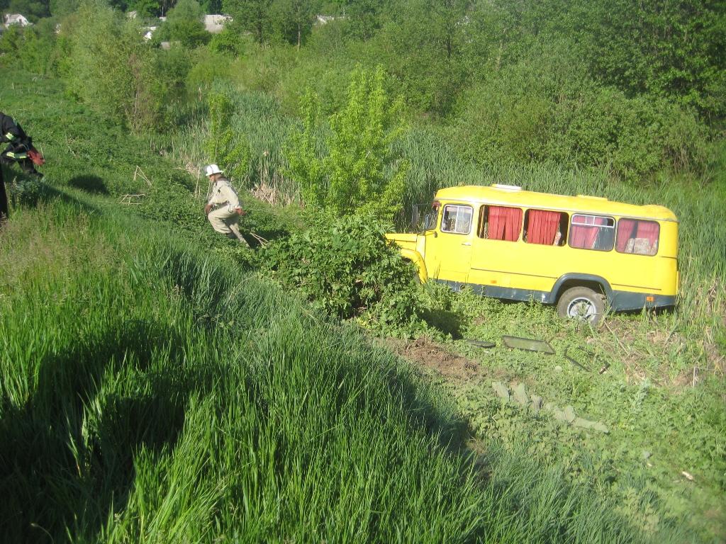 На место происшествия были направлены спасатели 9-й ДПРЧ м. Тетиев. По прибытию на место происшествия было установлено, что автомобиль КАвЗ 397653 вследствие отказа тормозов съехал с дороги и перевернулся. Личный состав предоставил медицинскую помощь водителю, и доставил автобус на дорогу для дальнейшей транспортировки. Детей внутри не было.