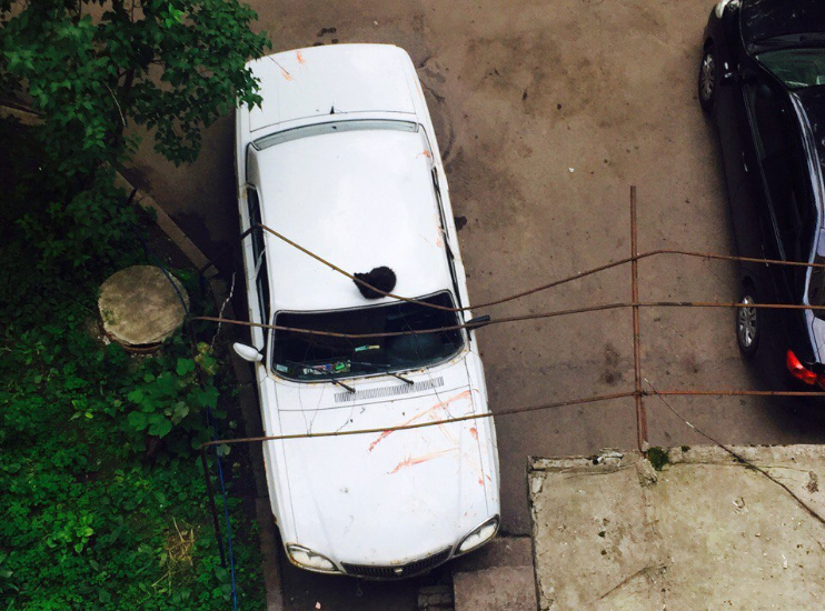 Пользователи социальной сети "Вконтакте" сообщают, что в Петровском районе временно оккупированного Донецка стоит окровавленный автомобиль.