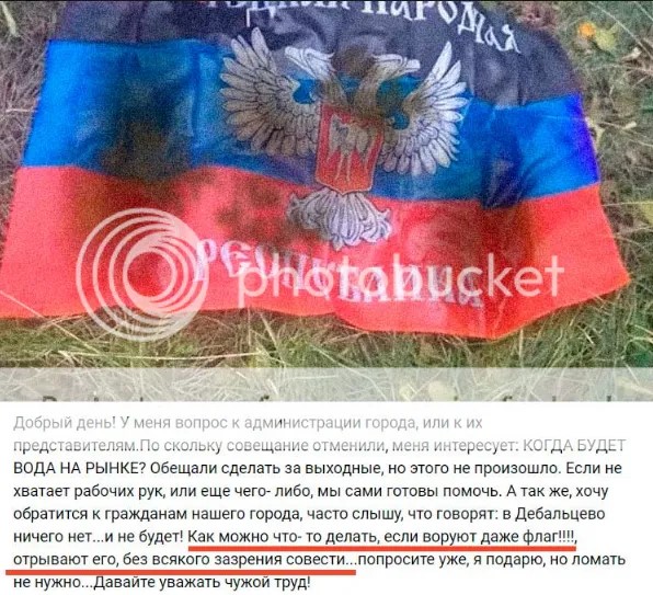 В оккупированном Дебальцево люди воруют флаги так называемой "ДНР". Об этом сообщила пользователь социальной сети "Вконтакте".