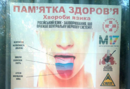 На днях российские СМИ начали активно "разгонять" новость о том, что якобы Киев увешан плакатами против русского языка. Координатор группы "Информационное сопротивление" Дмитрий Тымчук в Фейсбуке пояснил, откуда взялся плакат, который наделал столько шума в российском медиапространстве.