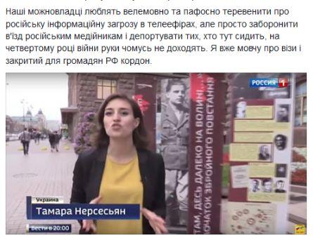 "Сегодня СБУ принудительно вернула на территорию РФ российскую пропагандистку Тамару Нерсесьян и запретила ей въезд на три года. Надеюсь, ни у кого не возникнет сомнения, что это личность действовала во вред национальным интересам Украины", - сказала Гитлянская.
