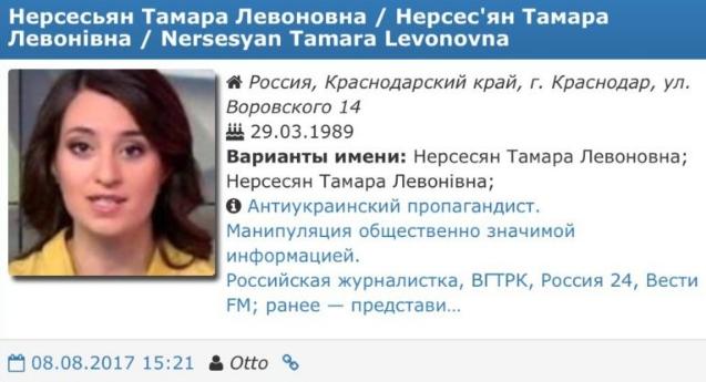 Напомним, ранее Тамару Нерсесьян вместе с оператором телеканала внесли в базу данных сайта «Миротворец».