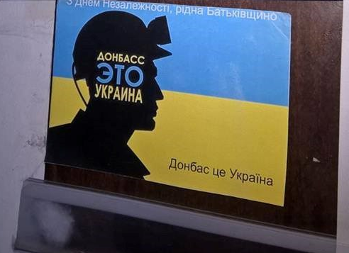 В лифтах, подъездах и почтовых ящиках оккупированных городов, а именно Донецка, Луганска, Макеевки и Горловки появились патриотические желто-голубые наклейки с надписью "Донбасс - это Украина".