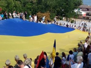 Сегодня, 23 августа, в Одессе активисты накрыли Потемкинскую лестницу 26-метровым флагом Украины.