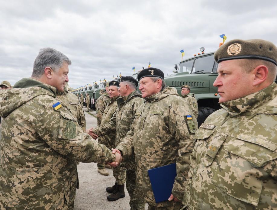 Президент Украины Петр Порошенко передал командирам военных подразделении ВСУ сертификаты на военную технику и вооружение, общее количество которых более 200 единиц. «Война убедительно показала, что конечную победу возможно получить только при условии сочетания высокого боевого духа, всенародной поддержки и современного вооружения и военной техники», - подчеркнул глава государства во время рабочей поездки в Житомирскую область по случаю Дня защитника Украины.
