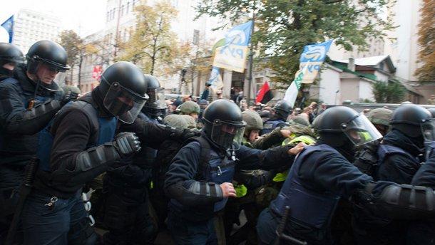 18 октября произошло несколько заварушек между активистами и правоохранителями. Бойцы батальона «Донбасс» вступили в конфликт с силовиками, которые не позволяли им пронести спальные мешки и карематы через кордон. Тогда «донбассовцы» перебросили часть вещей на территорию палаточного городка.