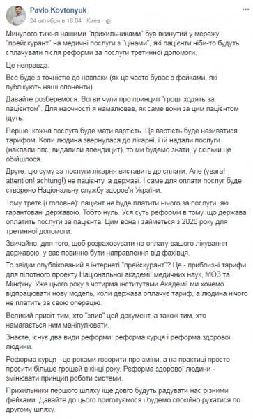 Глава парламентского комитета в ВР Ольга Богомолец недавно заявила, что после принятия медреформы цены на лечение станут космическими. К примеру, диагностика нарушения ритма сердца у ребенка будет стоить около 65 тыс грн. Заместитель Министра здравоохранения Павел Ковтонюк опроверг данную информацию.