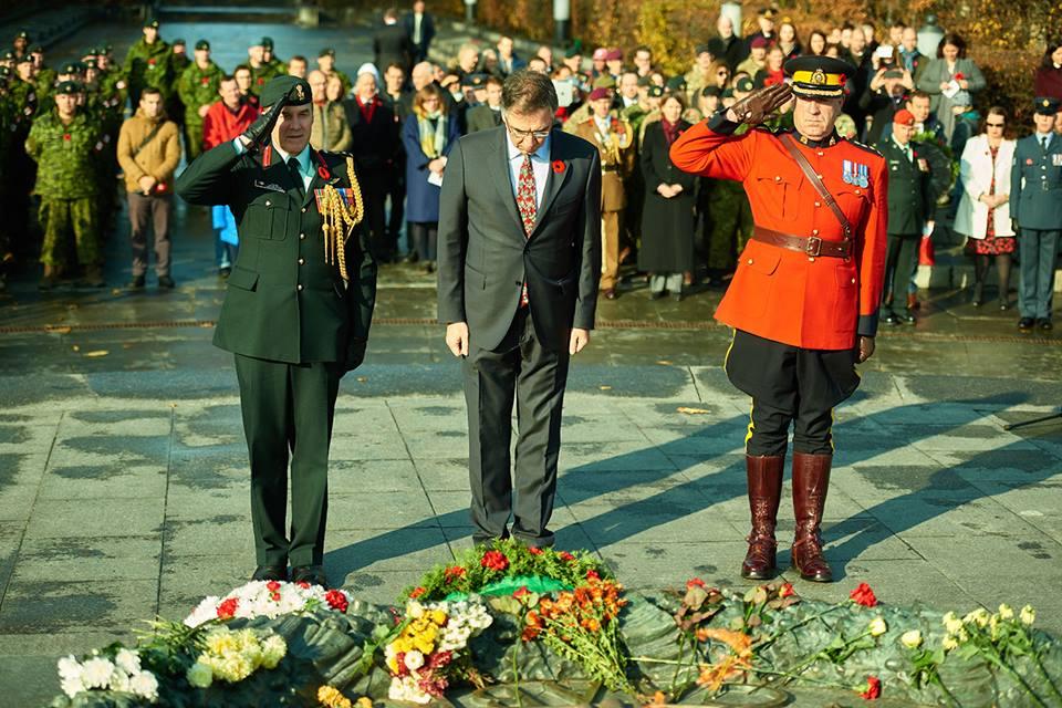 Сегодня в Киеве, в Парке Славы представители Вооруженных Сил Украины, послы иностранных государств в Украине, военные атташе, члены семей и представители сообществ других стран почтили погибших воинов в военных конфликтах возложением венков и цветов к Вечному огню монумента Неизвестному солдату.