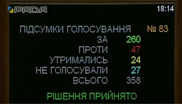 Верховная Рада Украины приняла в целом проект постановления №7000-П "О выводах и предложениях к проекту Закона Украины о Государственном бюджете Украины на 2018 год". 260 народных депутатов проголосовали "за", 47 - "против".
