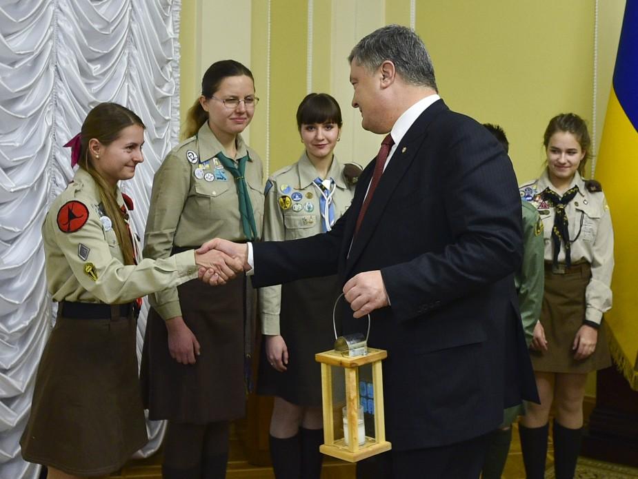 Украинские пластуны посетили Администрацию президента Украины и передали главе государства Петру Порошенко огонь мира из Вифлеема. Позже Вифлеемский огонь мира будет передан украинским военным в зоне АТО.