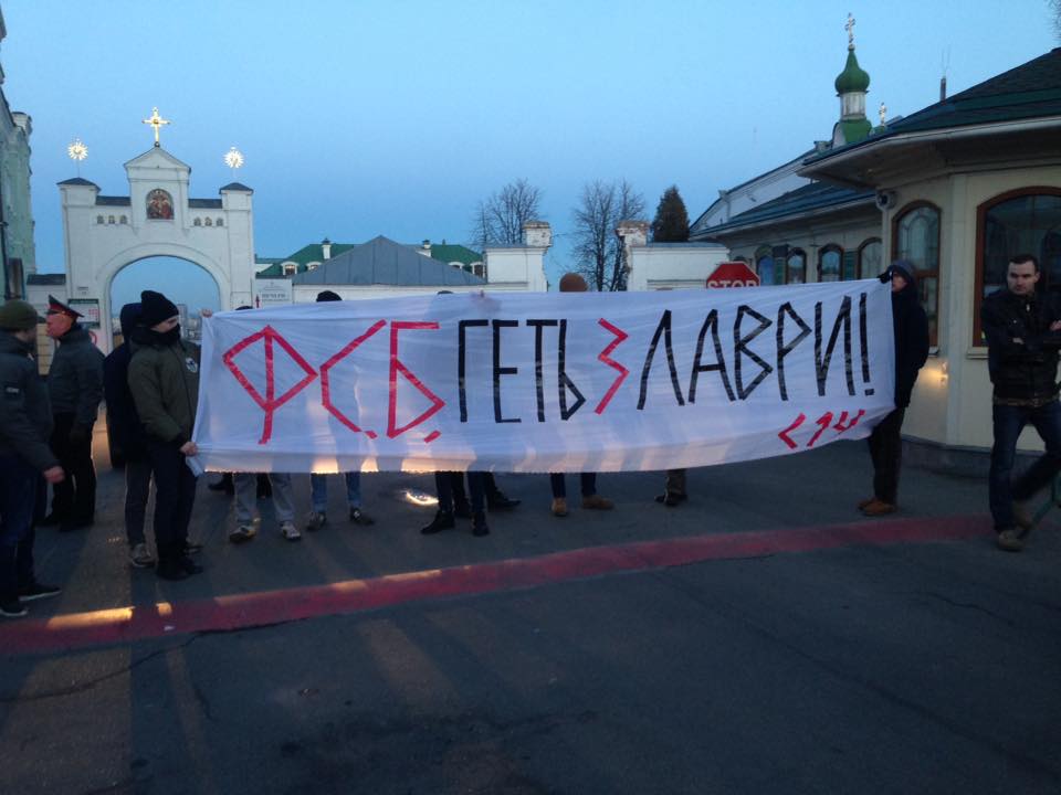 "В Лавре находится штаб сепаров и фсб-шников. Они отказываются отпевать бойцов АТО и крещеных не в церкви МП", - говорится на странице С14 в Фейсбуке.