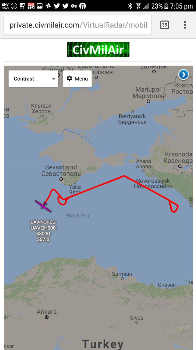Кроме «Ястреба», за оккупантами Крыма активно наблюдает и американский разведывательный самолет P-8A Poseidon. Многократное «нарезание кругов» можно заметить в районе Севастополя. Очевидно, повышенное внимание НАТОвской разведки к Крыму объясняется заступлением на боевое дежурство ЗРК С-400 «Триумф» в мысе Фиолент, чем не так давно хвастались россияне.
