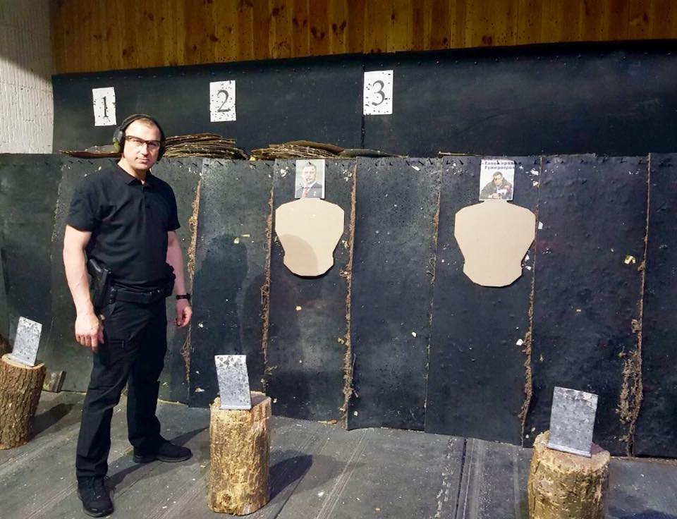 Глава криминальной полиции Национальной полиции Украины Вячеслав Аброськин провел учения по стрельбе, отрабатывая навыки на портрете боевика "ДНР" Александра Захарченко.