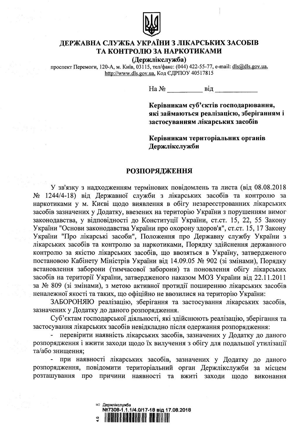 Соответствующее распоряжение № 7308 опубликовано на сайте Государственной службы Украины по лекарственным средствам и контролю за наркотиками, передает Час Пик.
