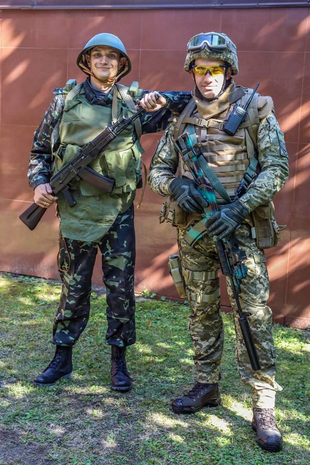 Чтобы продемонстрировать, как изменилось вещевое обеспечение украинской армии за последние 4 года, одного бойца одели в современную экипировку, а второго - в экипировку образца примерно 2012 года.
