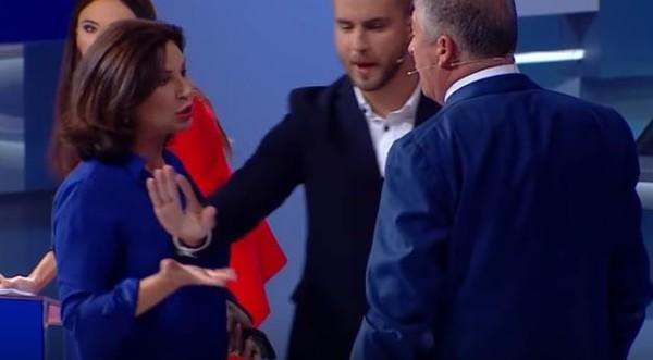 Ведущий сдерживал разбушевавшихся нардепов и они обменялись оскорблениями: «Ты - мерзавец!», «Сама ты мерзавка!».